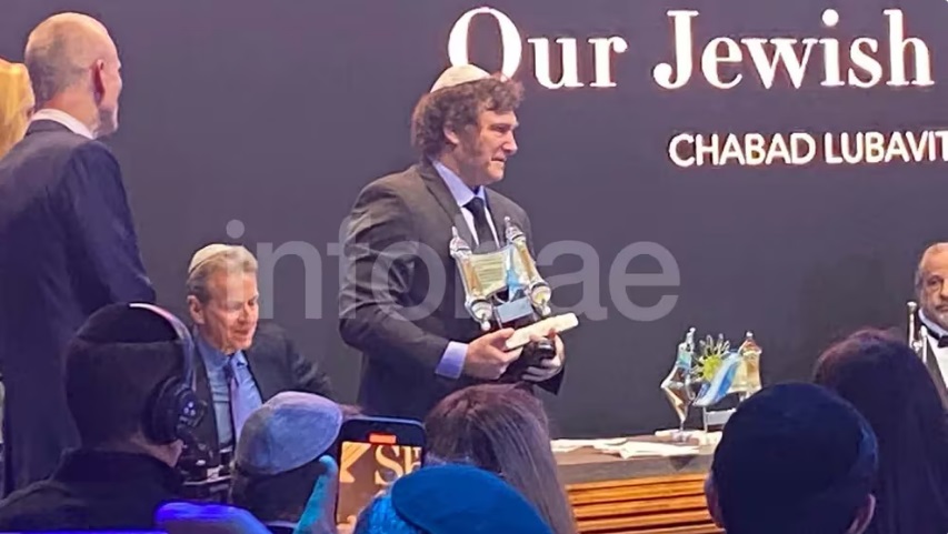 Cerca de mil judíos se pusieron de pie y aplaudieron a rabiar cuando Javier Milei ingresó al salón principal del centro social Menachem Mendel Schneerson de Miami. Sonaba la típica banda que siempre ameniza las fiestas paisanas y el cálido recibimiento conmovió al jefe de Estado, que llegó acompañado por su hermana y secretaria General de la Presidencia, Karina Milei: anoche los dos recibieron la distinción “Embajadores de la Luz”, entregada por Jabad Lubavitch en reconocimiento al compromiso que tienen con la libertad e Israel.