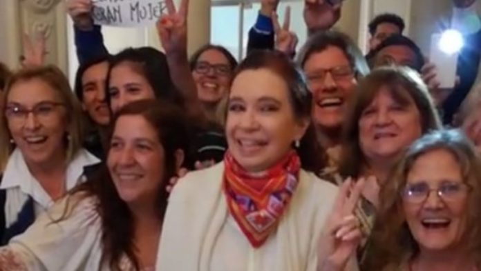 Cristina ingresó al edificio de la calle Rodríguez Peña, donde lleva adelante sus tareas. Pero no fue un día más para ella. Es que un grupo de personas la recibió con carteles contra Macri y con esa palabra que este lunes fue sensación: “machirulo”.