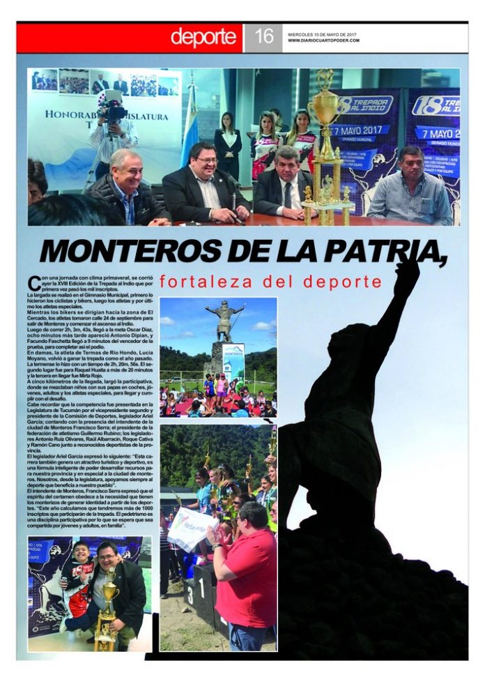 El intendente de Monteros, Francisco Serra expresó que el espíritu del certamen obedece a la necesidad que tienen los monterizos de generar identidad a partir de los deportes. “Este año calculamos que tendremos más de 1000 inscriptos que participarán de la trepada. El pedetrismo es una disciplina participativa por lo que se espera que sea compartida por jóvenes y adultos, en familia”.