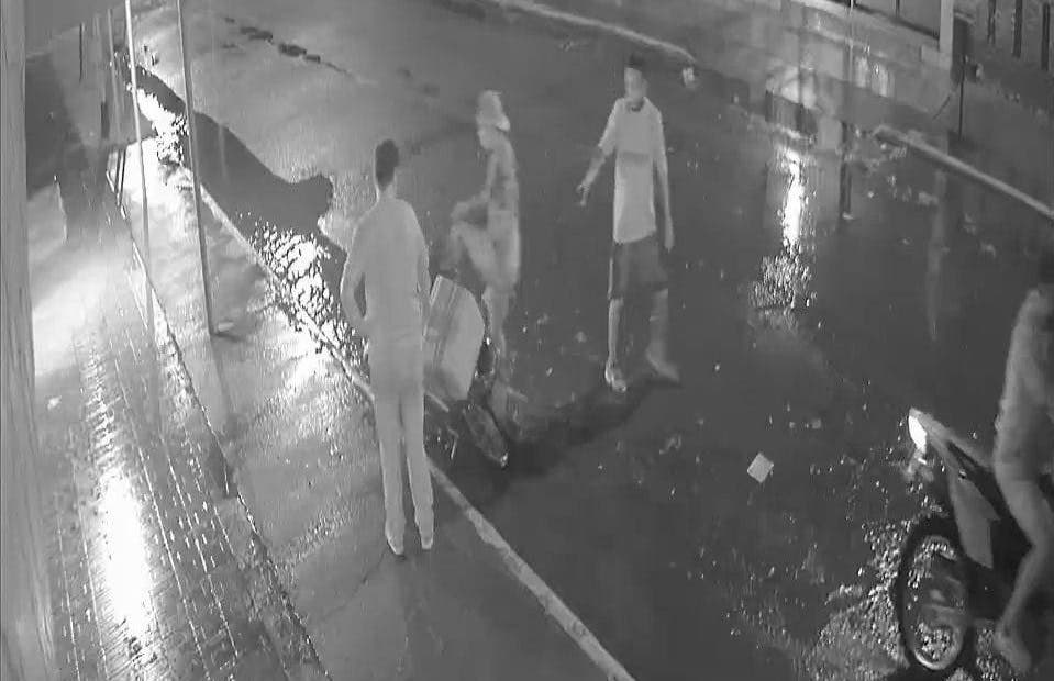 Mientras tanto, otro de los delincuentes se sube a la moto del repartidor y tras un par de intentos logra ponerla en marcha.