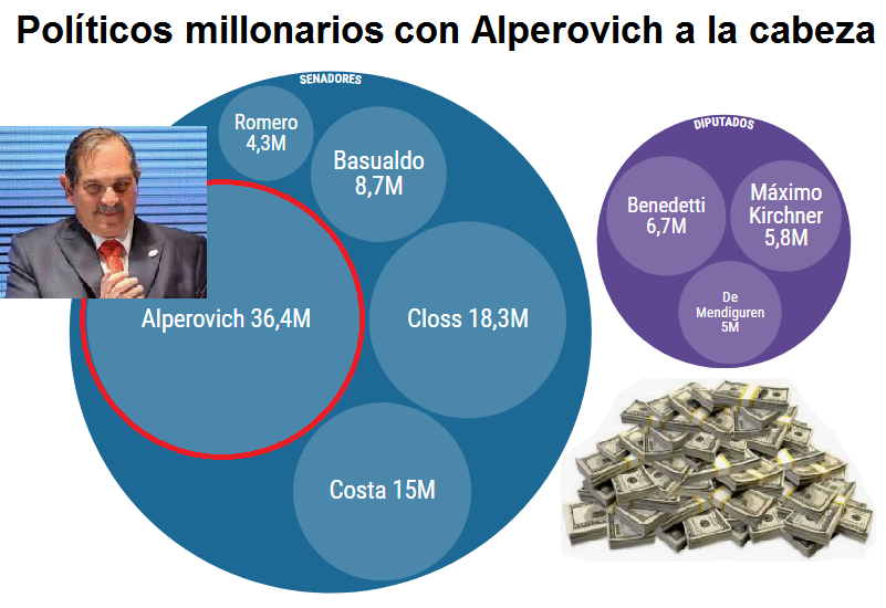 Es que Alperovich, tres veces gobernador de una de las provincias con mayor pobreza del país, integra el lote de los ocho senadores y diputados que declararon un patrimonio superior a $200 millones, por lo que deberán hacer su “aporte solidario, extraordinario para ayudar a morigerar los efectos de la pandemia”, tal como clama la iniciativa.