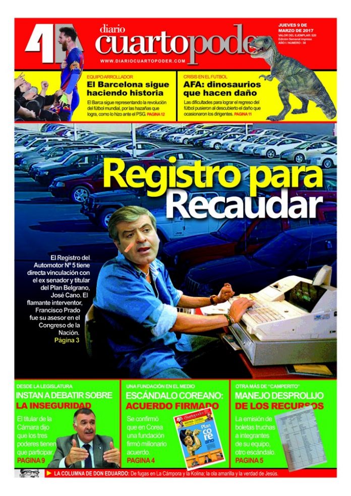 La oficina central que funciona en avenida Corrientes 5666, confirmó la titularidad de Prado sobre el Registro Automotor Nº 5 de Tucumán, ante una consulta realizada por Diario Cuarto Poder. Sin embargo, acá en la provincia se negaron a dar detalles sobre la titularidad.