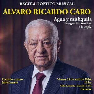 • “Agua y mishquila” Integración musical a la copla, de Álvaro Ricardo Caro. A las 19, en Sala Lazarte, Lavalle 145, San Miguel de Tucumán. Recitado y piano: Maestro Julio Lazarte.