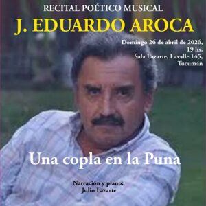 • “Una copla en la Puna”, de J. Eduardo Aroca. A las 19, en Sala Lazarte, Lavalle 145, San Miguel de Tucumán. Narración y piano: Maestro Julio Lazarte.