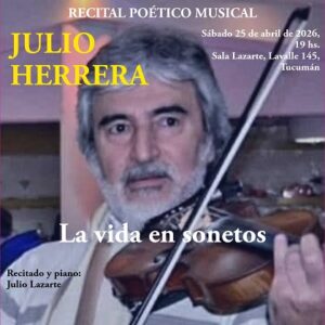 • “La vida en sonetos”, de Julio Herrera. A las 19, en Sala Lazarte, Lavalle 145, San Miguel de Tucumán. Recitado y piano: Maestro Julio Lazarte.