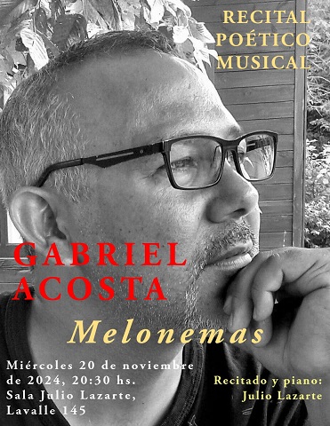 Miércoles 20 de noviembre: a las 20.30, “Melonemas”, de Gabriel Acosta. Recitado y piano: Julio Lazarte.