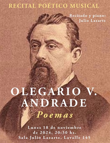 Lunes 18 de noviembre: a las 20.30, “Poemas”, de Olegario V. Andrade. Recitado y piano: Julio Lazarte.