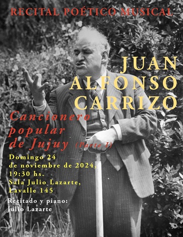 Domingo 24 de noviembre: a las 19.30, “Cancionero popular de Jujuy” (Parte 1), de Juan Alfonso Carrizo. Recitado y piano: Julio Lazarte.