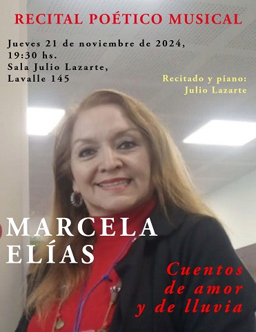 Jueves 21 de noviembre: a las 19.30, “Cuentos de amor y de lluvia”, de Marcela Elías. Recitado y piano: Julio Lazarte.