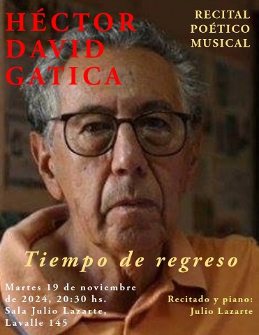 Martes 19 de noviembre: a las 20.30, “Tiempo de regreso”, de Héctor David Gatica. Recitado y piano: Julio Lazarte.