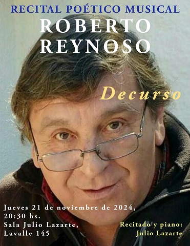 Jueves 21 de noviembre: a las 20.30, “Decurso”, de Roberto Reynoso. Recitado y piano: Julio Lazarte.