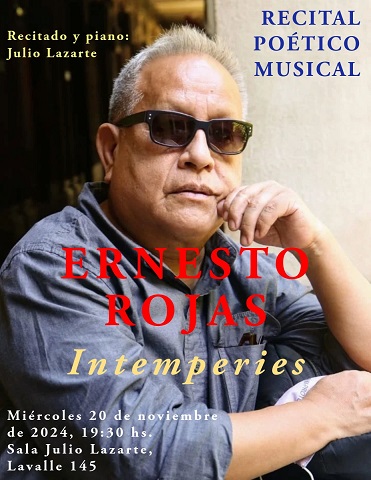 Miércoles 20 de noviembre: a las 19.30, “Intemperies”, de Ernesto Rojas. Recitado y piano: Julio Lazarte.