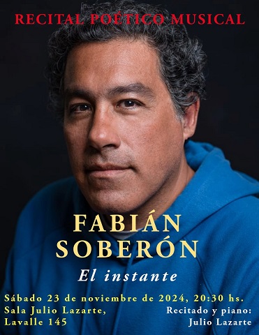 Sábado 23 de noviembre: a las 20.30, “El instante”, de Fabián Soberón. Recitado y piano: Julio Lazarte.