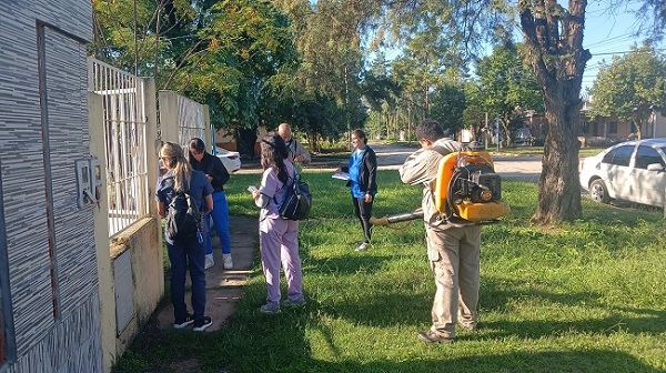 En forma conjunta con Salud Ambiental perteneciente al Ministerio de Salud de la Provincia, realizaron un operativo en el barrio Sur por posible caso de dengue, el cual consiste en bloqueo focal, busca de febriles, fumigación, ingreso a las propiedades para detectar posibles criaderos del mosquito.