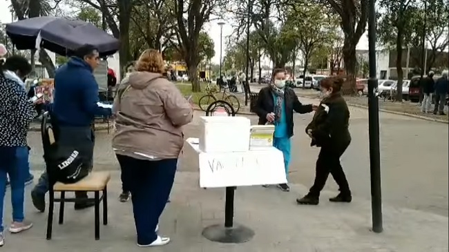 En plaza principal del municipio cuya intendente es Sandra Figueroa, se está llevando a cabo un operativo contra la Covid 19. Se está inoculando con dosis de la Sinopharm y Astrazeneca para completar calendario.