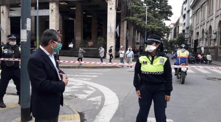 Los principales puntos que supervisó fue en la zona bancaria con el objetivo de verificar que se cumplan las medidas de prevención dispuestas para el cobro de los jubilados, evitando como medida primordial, la aglomeración de personas.