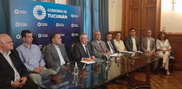 En conferencia de prensa, el gobernador Osvaldo Jaldo, anuncia medidas en el marco del marco del reacomodamiento de la administración pública provincial.