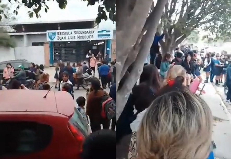 Más abajo se puede ver un video de la evacuación en las puertas del edificio educativo.