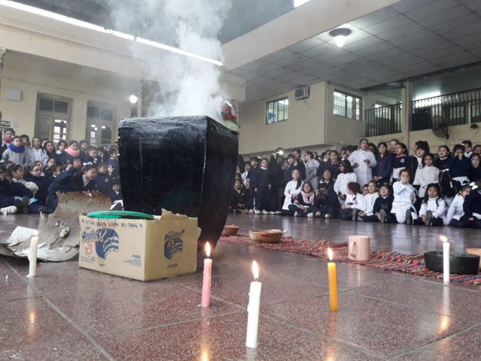 Las docentes encargadas de la mencionada actividad, organizaron un rito abreviado, del tradicional que se realiza en muchas partes del norte argentino.