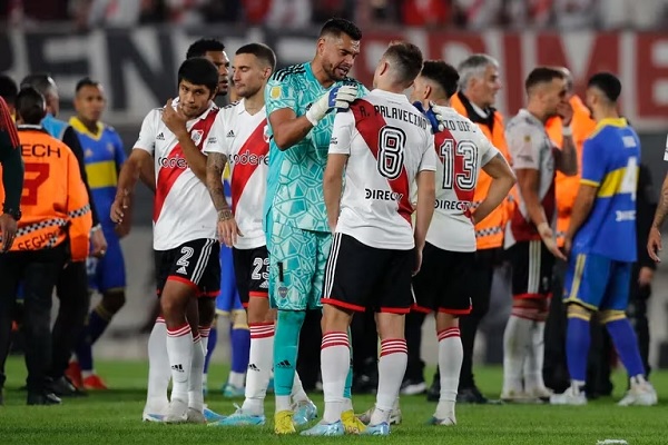 “Estas con las pulsaciones altas en cualquier partido, imaginate en este. Fue un error, no es la imagen que queremos dar desde River. Lo dijo Martín (Demichelis), lo dijo Enzo (Pérez) y lo dejaron bien en claro. Es un legado que se viene marcando y salgo a hablar en modo de arrepentimiento porque hay un camino marcado y la idea es seguir por ese camino”, continuó el jugador de 26 años, quien reconoció que habló con el capitán del equipo sobre lo sucedido y la idea de salir a hablar públicamente para pedir disculpas por el exabrupto.