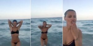 Más tarde, la ex pareja del actor Benjamín Vicuña subió a su cuenta de Twitter unos videos que grabó mientras disfrutaba del mar en compañía de una amiga.