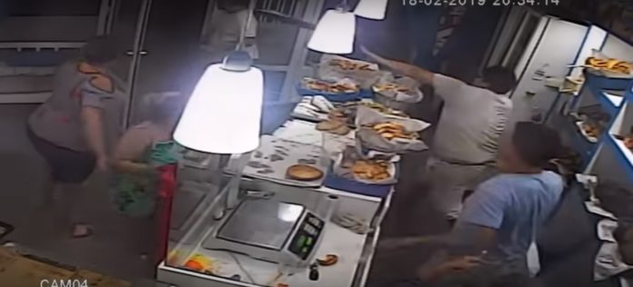 Un hombre entró a robar al comercio amenazando a una de las empleadas con un cuchillo. Luego de registrar rápidamente el lugar en busca de cosas de valor y de recolectar un poco de dinero comienza a salir del local cuando es alcanzado por uno de los dueños.