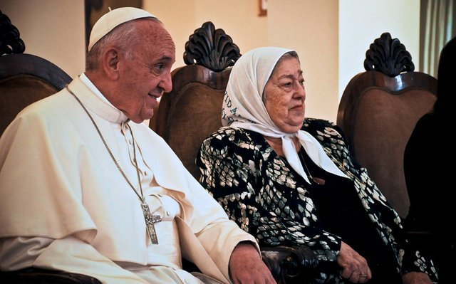 Este no es el primer gesto de respaldo del Obispo de Roma a Hebe. Luego de años de críticas y distanciamientos, Francisco recibió a la titular de Madres en mayo de 2016, quien viajó acompañada por la esposa del ex funcionario Guillermo Moreno, la contadora Marta Cascales.