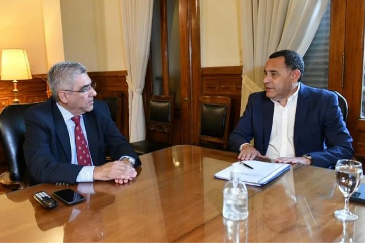 El ministro de Gobierno y Justicia, Regino Amado, junto con el ministro de Economía, Daniel Abad, comienzan la ronda de negociaciones paritarias.
