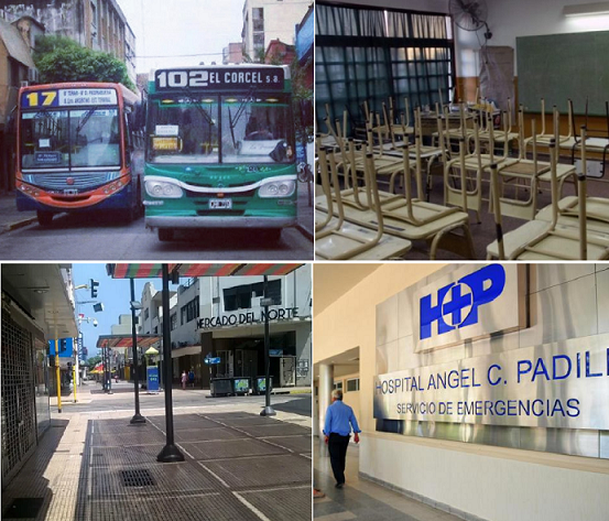 En Tucumán no habrá clases en las escuelas públicas, los bancos no atenderán y no  habrá recolección de residuos. El comercio abrirá con normalidad y los colectivos circularán de manera habitual. Algunos profesores ya avisaron que no adhieren a la huelga por lo que darán clases. No se cargarán tarjetas Ciudadanas.