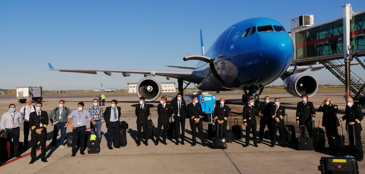 En todo momento, la tripulación integrada por 4 comandantes, Carlos Grecco, Gustavo Caponelli, Rodrigo Arribillaga y Marcelo Ejberowicz; 8 copilotos, Alejandro Florentino, Juan Bonelli, Juan Quintana, Walter Piazza, Philipe Letestu, Hernán Aravsky, Pablo Golder Venneri y Javier Sanahuja; 4 técnicos de vuelo, Sergio Regidos, Rodrigo Tavella, Pablo González García y Gustavo González; un despachante operativo, Mauricio Falce y un despachante de cargas, Diego Maciel, deberán permanecer a bordo de la aeronave de manera tal que se respeten las condiciones de aislamiento.