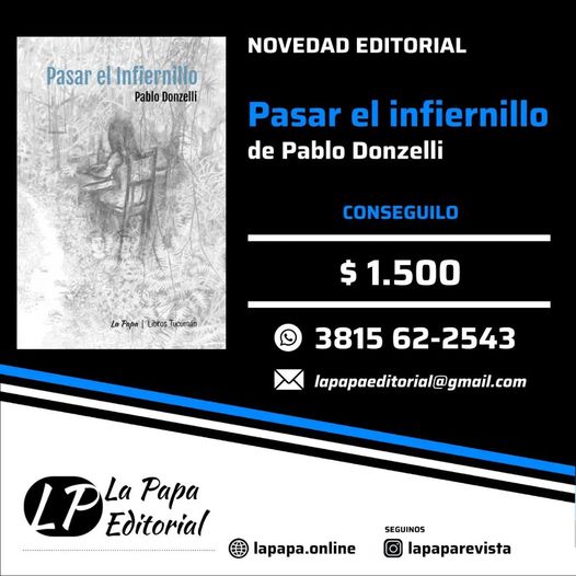 PD: —Completamente no. Una vez presentado el libro de la editorial La papa empieza otro trabajo: la exhibición y venta del libro. Eso dará un panorama de si lo realizado estuvo bien, pero ya estás con la elaboración de un nuevo libro. Dicho de otra manera, la obra en la editorial es el catálogo y siempre está en proceso, con sus aciertos y errores. En cambio el autor entrega su obra y ya no hay movimiento posible para él mientras los lectores terminan el ciclo con su propia interpretación y lectura. La ansiedad es absolutamente diferente. Aquí cabe aclarar que Pasar el Infiernillo es una coedición junto a Libros Tucumán. Creo que ese es el camino para las editoriales tucumanas y de la región, la coedición.