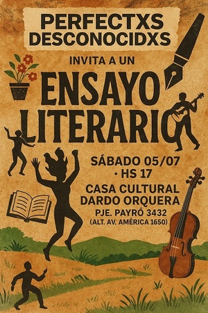 Perfectxs Desconocidxs invita a un Ensayo Literario, que se realizará este sábado 5 de julio, desde las 17, en la Casa Cultural Dardo Orquera, ubicada en Pasaje Payró 3432, altura Avenida América 1650, de San Miguel de Tucumán.