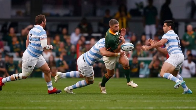 En Durban, los de Cheika batallaron durante casi 20 minutos hasta que Jasper Wies rompió el marcador con el primer try para el local. El capitán, Siya Kolisi, estiró la ventaja a 14-0 con otro try diez minutos más tarde, aunque Frans Steyn aportó tres más desde un penal a distancia. Recién casi a los 40 minutos los argentinos apoyaron por intermedio de Gonzalo Bertranou y sumaron la conversión de Emiliano Boffelli (goleador del torneo con 65 puntos).