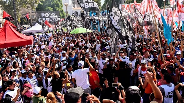 “Frenemos en las calles la motosierra contra los barrios, los trabajadores, la juventud y las mujeres”, es una de las consignas del Polo Obrero.“Frenemos en las calles la motosierra contra los barrios, los trabajadores, la juventud y las mujeres. ”, comienza el documento aprobado en Plaza Lezama por los delegados de izquierda de todo el país. Y agrega: “Las organizaciones que participamos de este plenario reivindicamos haber enfrentado la política de hambre, miseria y ajuste del gobierno del Frente de Todos durante todo su mandato y de haber enfrentado también las políticas de ajuste y represión de Mauricio Macri”.