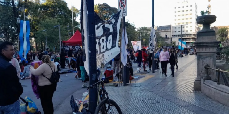 Piqueteros realizan un acampe en Plaza Independencia por más subsidios