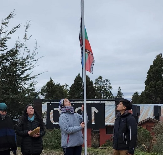 En las imágenes que registraron se pueden ver a una veintena de personas realizando un ritual alrededor del mástil del CURB (Centro Regional Universitario Bariloche) de la UNC, donde luego se izaron la bandera que utilizan estos grupos tanto en Argentina como en Chile.