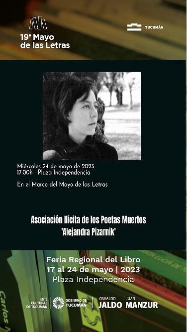 El 19º Mayo de las Letras traerá como novedad saliente de este miércoles 24 de mayo, la presentación oficial de la Asociación Ilícita de los Poetas Muertos “Alejandra Pizarnik”, en el escenario principal de plaza Independencia a partir de las 17.