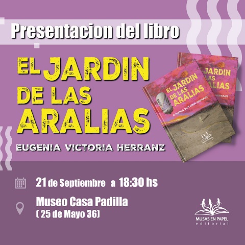 Letras de Fuego / Noticias. El próximo sábado 21 de septiembre, a las 18.30, en el Museo Casa Padilla, se presentará el libro “El Jardín de las Aralias”, de la poeta tucumana Eugenia Victoria Herranz Ingrao. Se trata del primer poemario de la autora.