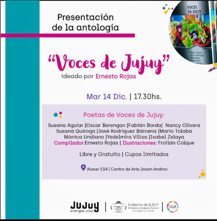 Mañana, martes 14 de diciembre, se presentará la antología “Voces de Jujuy”, compilada por el escritor salteño radicado en Tucumán, Ernesto Rojas, quien con este cierre de 2021 se sigue mostrando como un gran trabajador de la cultura del Norte Argentino.