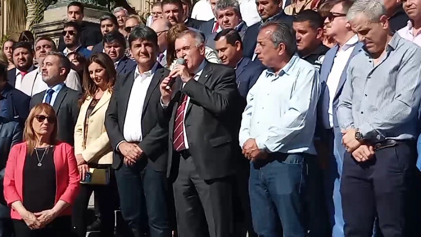 El gobernador, Osvaldo Jaldo, encabezó desde la explanada de Casa de Gobierno, la entrega de maquinaria vial adquirida por la provincia en el marco del programa Pre Lluvia.