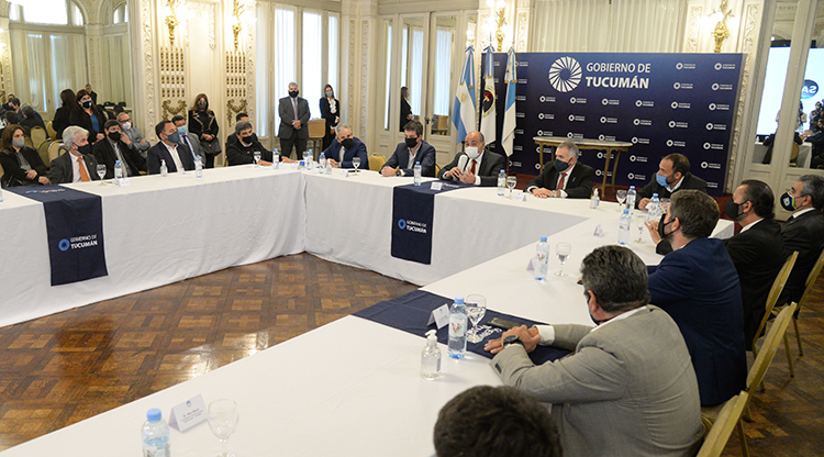 el Gobernador dijo delante de empresarios tucumanos y de los intendentes, Germán Alfaro (Capital); Darío Monteros (La Banda) y Aldo Salomón (Alderetes): “hoy se hizo la apertura de 15 sobre licitatorios para adjudicar y poner en marcha obras que superan los $200 millones, de un monto comprometido por el presidente, Alberto Fernández, que alcanza los $6000 millones”.