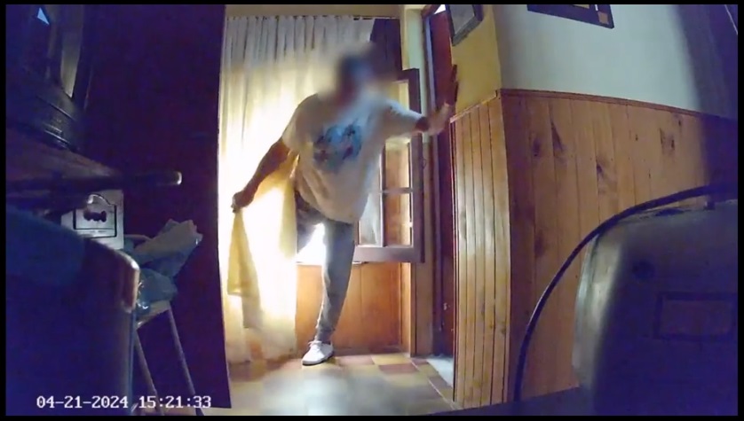 El caso fue dado a conocer por el periodista Diego Gabriele. En las imágenes se observa al sospechoso ingresar sigilosamente a lo de sus suegros a través de una ventana. Tras revisar unas cosas en un mueble, toma lo que parece ser un sobre y luego se retira por el mismo lugar.