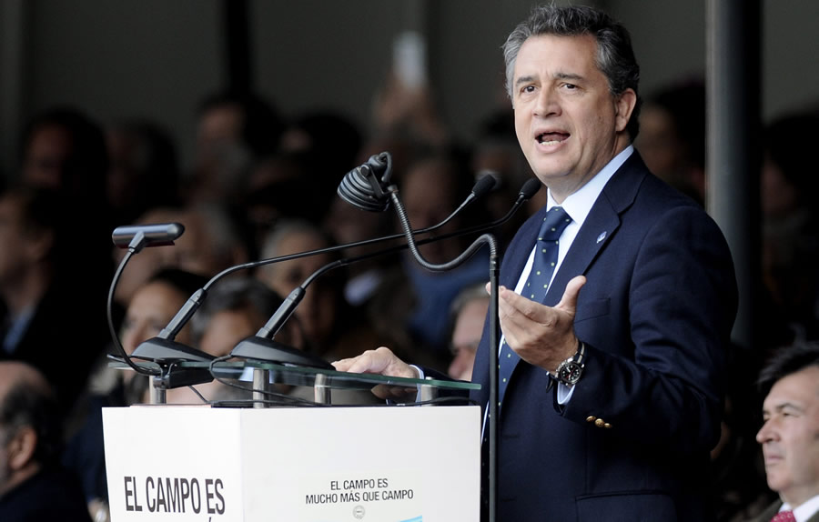 El presidente de la Sociedad Rural, Luis Etchevehere, cuestionó con dureza al gobierno anterior. Elogió al actual, aunque deslizó críticas por la crisis del sector lechero.