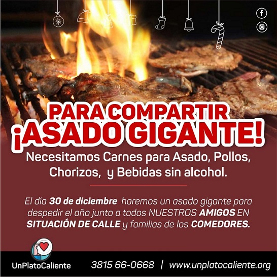 Desde la organización dejaron saber que necesitan para el gran asado solidario 200 kilos de carne para asado, 40 pollos y 200 gaseosas.