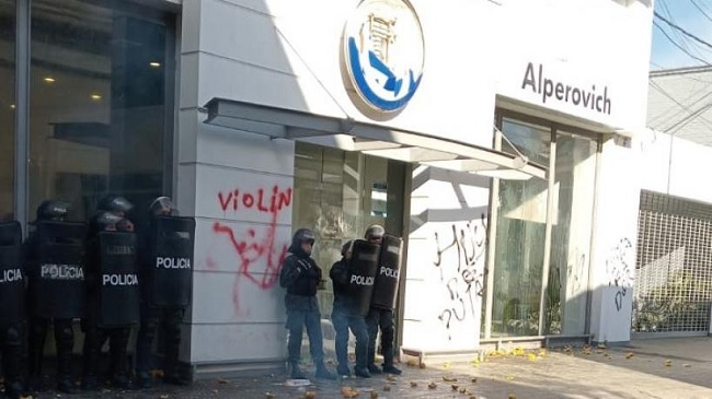 Alrededor de las 10:15 de la mañana, en la calle San Lorenzo 254 de la Capital tucumana, donde se encuentra la concesionaria Volkswagen de Alperovich SA, se vivieron momentos de tensión. Un grupo de ahorristas, al grito de ¡Estafadores!, golpeando las manos. Una camioneta estacionada a unos metros es la encargada de poner música de batucada. Una señora, frente a la concesionaria, sostiene el megáfono y grita: “Esto es una fiesta, es una lucha”; “Queremos pagar, queremos estar al día, queremos que salga alguien a darnos una respuesta, una solución”.