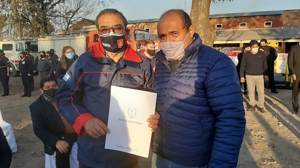 El intendente Roberto Moreno participó de la entrega de un subsidio a bomberos otorgados por el Gobierno provincial.