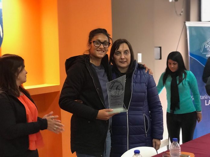 Solana Pereyra, arquera tucumana de la Selección Argentina de fútbol recibió un reconocimiento de la Secretaría de la Mujer, tras realizar una clínica de balompié femenino en la provincia.