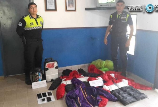 A los pocos minutos de la denuncia realizada por la víctima, un equipo de la Comisaría de Lules junto a efectivos de la Guardia Municipal, iniciaron tareas de investigación que los llevaron al acusado. Fue así, que en un pasaje sin nombre del barrio antes mencionado, vieron al joven de 32 años cuando escapaba. Al llegar a los márgenes del río fue rodeado y aprehendido. Los efectivos continuaron con la inspección en la zona y lograron recuperar cinco teléfonos celulares, dos parlantes, seis camperas, entre otras pertenencias de la víctima.