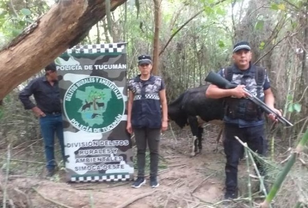 Tras la denuncia del propietario del animal vacuno, un equipo de esta División inició intensas tareas de rastrillajes, averiguaciones e investigaciones. Es así que los efectivos obtuvieron datos que indicaban que el animal podría estar oculto en el monte de las localidades de El Oval o de Cejas de Aroca, departamento Simoca.