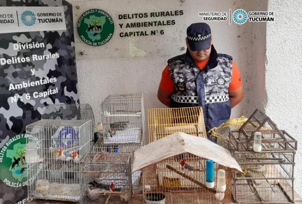 Durante un allanamiento concretado en el barrio Nueva Italia de la ciudad de Tafí Viejo, un equipo de la División Delitos Rurales y Ambientales Capital N° 6 secuestró 12 aves, entre cardenales, jilgueros y reyna mora, además en el domicilio registrado también se secuestraron 10 jaulas y una trampera metálica.